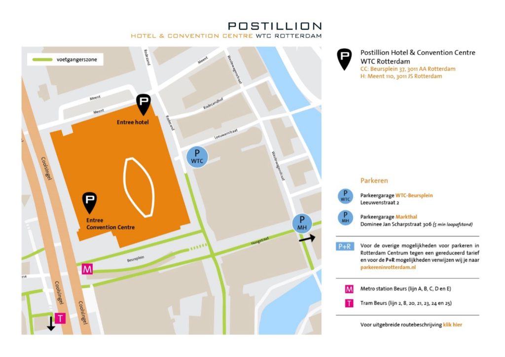 Postillion Hotel & Convention Center WTC Rotterdam is easily accessible by public transport. From Rotterdam Central train station, take the metro, get off at Beurs station and choose the Beursplein exit. Several tram options are also available.